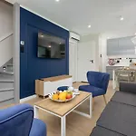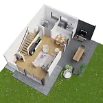 Wnętrza wyposażone są w sofę oraz telewizję satelitarną. W łazience znajdują się oddzielna toaleta i prysznic, suszarka do włosów i ręczniki kąpielowe.